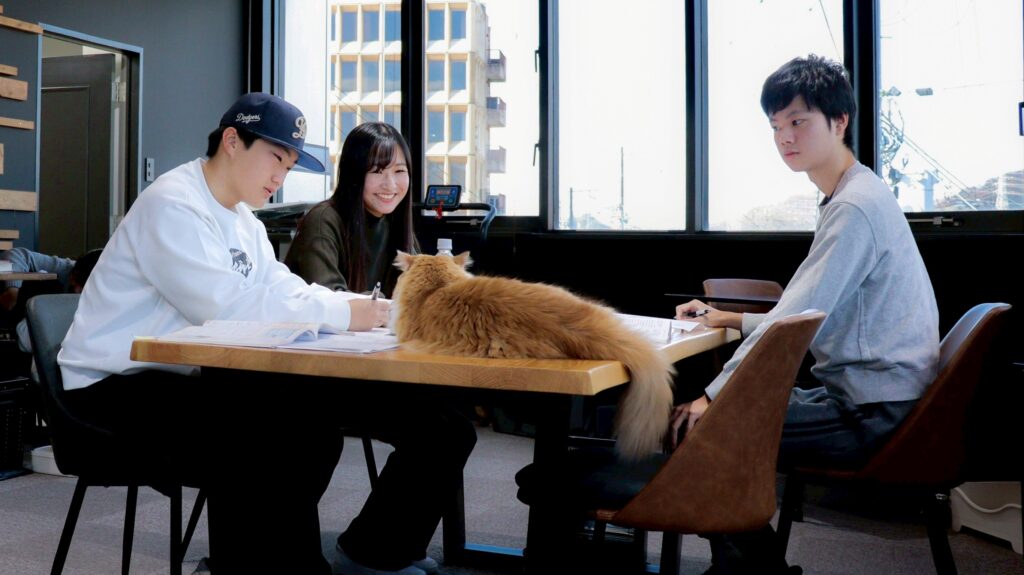 教室の雰囲気が落ち着いていて勉強しやすそうだと思いました。先生もすごく優しくて話しやすいし、レポートは自分がやりたい時にできるので取り組みやすいです。レポートの後は友だちや先生と話したり猫と遊んだりするのが楽しくて好きな時間です。これから勉強とアルバイトを両立して充実した毎日を過ごしていきたいです。(1年生女子)